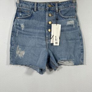 Zara Jean Shorts Womens 2 Blue High Rise Distressed Button Fly American Girlcore
