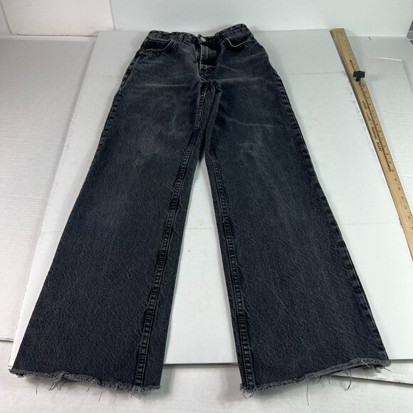 Zara Jean Women 25x29* High Rise Wide Leg Black Faded Raw Bottom Hem Denim Tag 2
