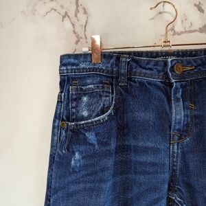 Zara Jean Women 4 Blue Boyfriend Denim Distressed Medium Wash Patchwork Railroad