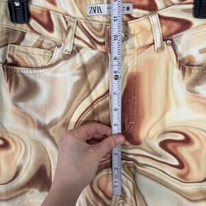 Zara Jeans Womens 4 Tan Brown Swirls Marbled Agate Psychedelic Abstract 100% Cotton Rock Punk Grunge Goth Neutral Boho Bohemian Hippie Festival Wide Leg High Rise Retro Button Fly beige Cream