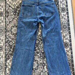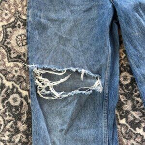 Zara Jeans 8 Destroyed High Rise Straight Leg Ankle Fringe Med Wash Streetwear