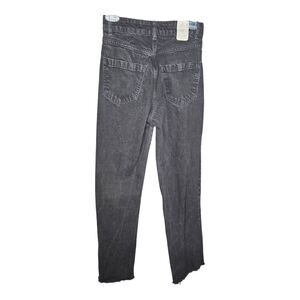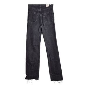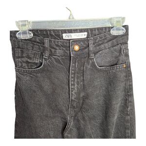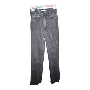 Zara Jeans Black Flare Leg Denim Zip Pants Raw Hem Women's Size 2
