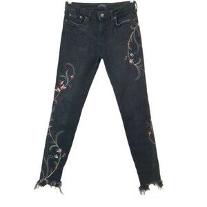 Zara Jeans Black Washed Embroidered Skinny Raw Hem 4