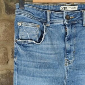 Zara Jeans Distressed Skinny Woman's Size 31 Light Wash Stretch Ankle