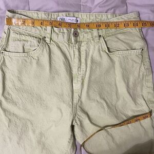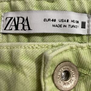 Zara Jeans High Rise Straight Leg Denim Size 8 Lime Green Cotton 90s Mom…