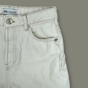 Zara Jeans Straight Leg Raw Hem Off White Size 2