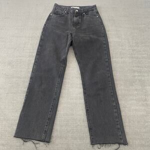 Zara Jeans Women US 2 Black High Rise Wide Leg Classic Casual Raw Hem Zip Fly