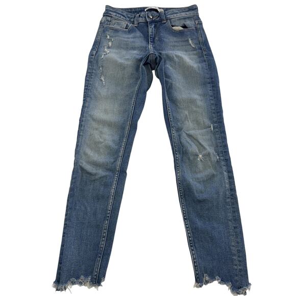 Zara Jeans Womens 2 Blue Distressed Raw Hem Skinny Mid Rise Vintage Wash Denim
