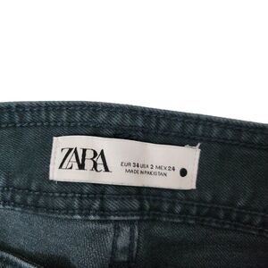 Zara Jeans Womens 2 Green Wide Leg High-Rise Bloggers Fave Boho Raw Hem Y2K