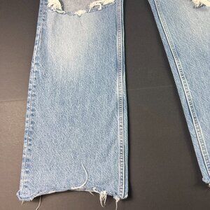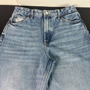 Zara Jeans Women's 29x33* High Rise Wide Leg Blue Distressed Raw Hem Denim Tag 8