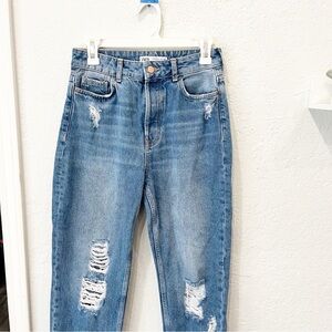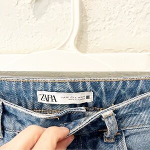 Zara Jeans Women's 4 Light Wash Distressed Destroyed Chewed Hem High Rise Button