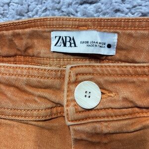 Zara Jeans Womens 4 Wide Leg Burnt Orange High Waist Raw Hem Y2K Style Skater