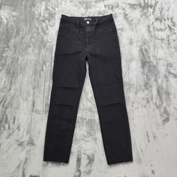 Zara Jeans Womens 6 Black High Rise Skinny Raw Ripped Busted Knee Stretch Denim Casual