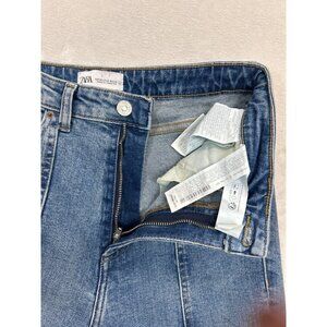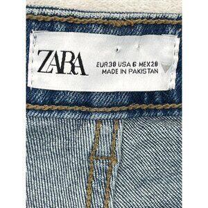Zara Jeans Womens 6 Blue Denim Straight Skinny Split Ankle High Rise