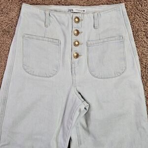 Zara Jeans Womens Size 4 Light Wash Blue High Rise Wide Leg Denim Button Fly
