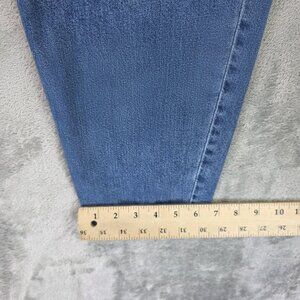 Pre-owned with light overall wear from normal use. Denim fabric remains clean and intact with no holes, stains, or fraying. Button, zipper, and elastic waistband are fully functional.