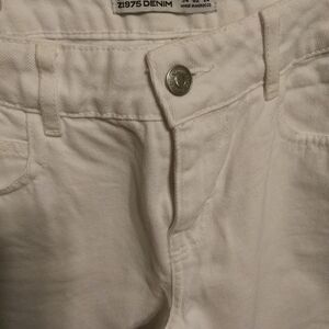 women's Zara Basic Z1975 White Ruffled ham Cropped Jeans