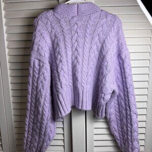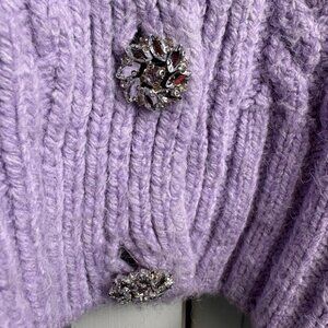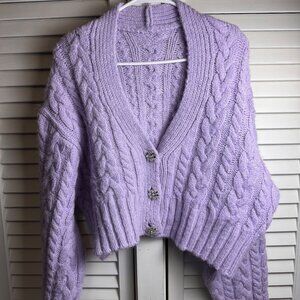Zara Jewel Button Purple Cable Knit Cropped Cardigan Sweater Rhinestone Blogger