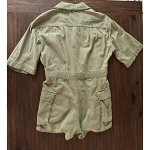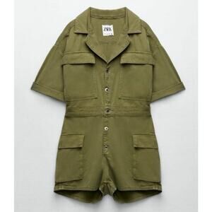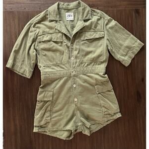 Zara Jumpsuit Romper Women’s Small Cargo Pocket Short Sleeve Green Denim