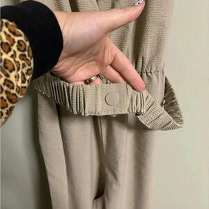 Zara Jumpsuit Size Medium Poly Linen Blend Tan One Piece Belted Deep V Neck