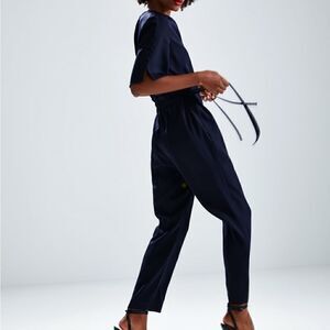Zara Navy Blue Jumpsuit With Drawstring and Button Detail