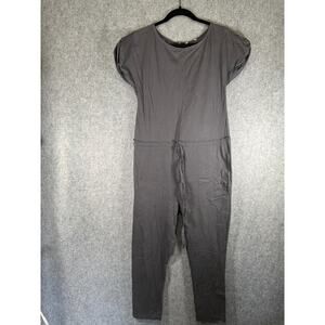 Zara Jumpsuit Women Medium High Neck Gray Short Sleeve Straight Relax Baggy