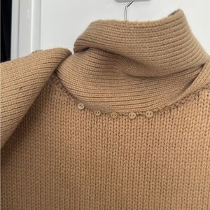 Elegant beige knit sweater with coordinating, removable scarf. Ideal for layering. Scarf can be removed if you want to just wear the sweater.