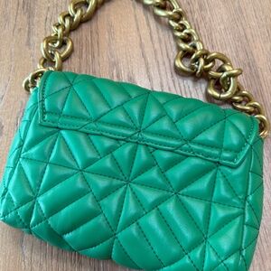 Zara Kelly Green Quilted Faux Leather Gold Chain Shoulder Bag