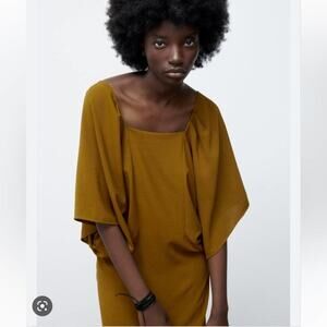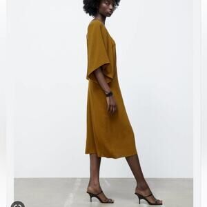 Zara Khaki Balloon voluminous Sleeve Dress Size Small