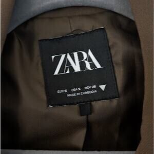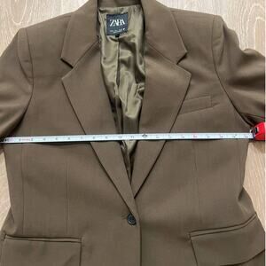 Zara Khaki Basic V-neck Long Sleeve Button Blazer Jacket, size S