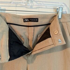 Zara Khaki with Black Polka Dot Work Trouser Pants, Size 6