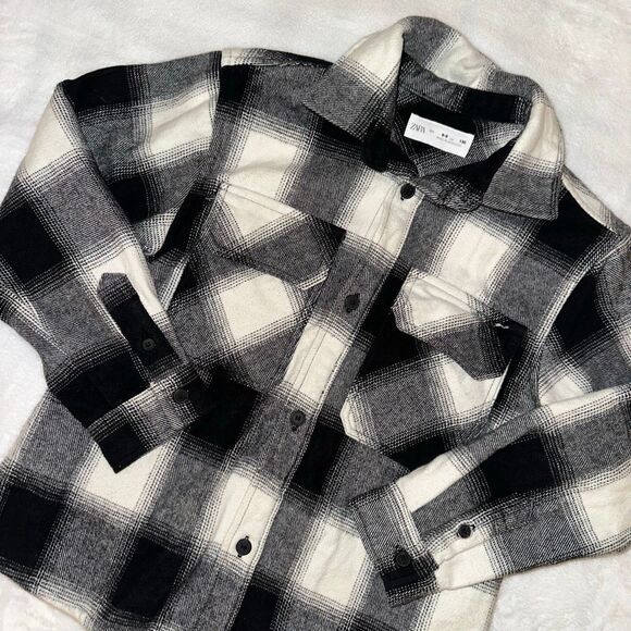 Zara Kids 8-9 Black White Plaid Flannel Button Down Shirt Long Sleeves Collared