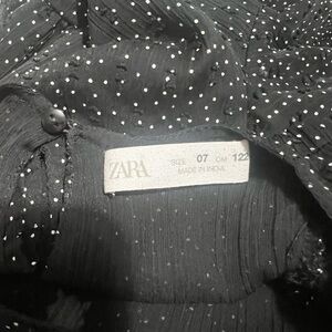 Zara Kids Dress Girls Size 7 Embroidered Swiss Dot Black Party Holiday