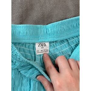 Zara Kids Girl Size 10 CM 140 Blue Light Bright Turquoise Blue Eyelet Shorts drawstring elasticated causal lightweight flowy adjustable stretchy vacation amusement park summer spring
