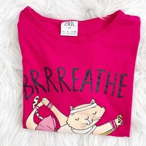 (1) Zara Pink “Brrreathe All The Day Long” graphic Tee Top. Machine wash. Excellent condition.