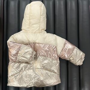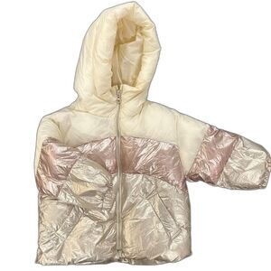 Zara Kids Girls Metallic Winter Hooded Puffer Jacket Pink White Size 4-5 Years