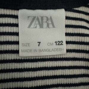 This Zara Kids girl's tank top is a perfect addition to your little one's summer wardrobe. The black and white striped design gives a bohemian, nautical, or modern vibe. The relaxed fit and soft material make it comfortable to wear for any occasion, whether it's a casual day out or a formal event.