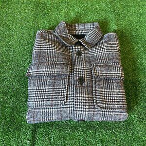 Zara Kids Long Sleeve Pockets Plaid Grey Wool Oversized Shirt Jacket Size 9-10