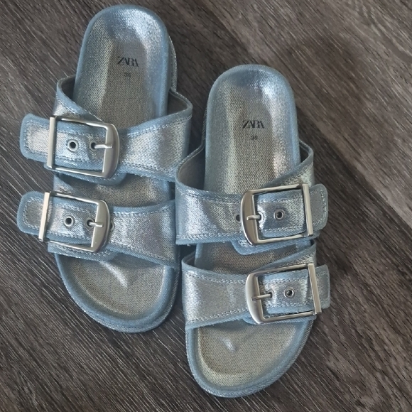 Zara Kids Metallic Blue Buckle Sandals