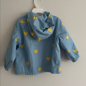 Pre owned in excellent conditions Zara Kids Rain Wind Jacket Toddler Girl 2T Blue Yellow Heart Print Hoodie