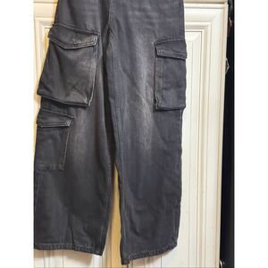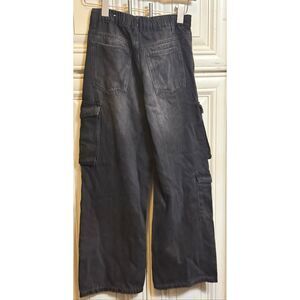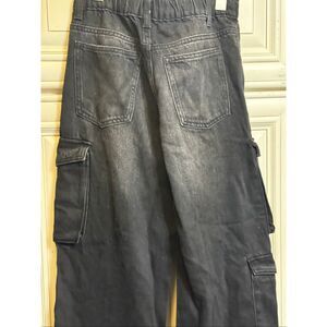 Zara Kids Relaxed Wide Leg Denim Multi Cargo Jeans Wash Black Size 11-12