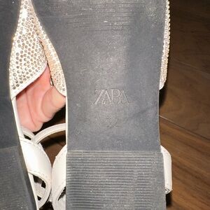 Shimmering silver sandals with ankle strap. Perfect for special occasions.