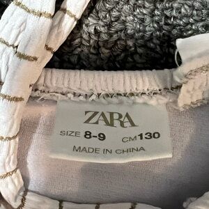 Zara Kids Swimsuit Girls Size 8-9 White & Gold Stripes One Piece Ocean Pool