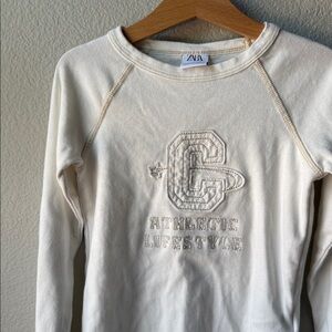 Stylish white long sleeve top with embroidered design. Perfect for casual wear. Size 9-10