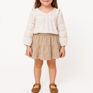 Perfect for kids' cottagecore, prairie girl, vintage-inspired wardrobes, sweet school looks, everyday soft neutrals, European children's fashion, minimalist playwear, spring layering, heirloom-style basics, and photo-ready ensembles.