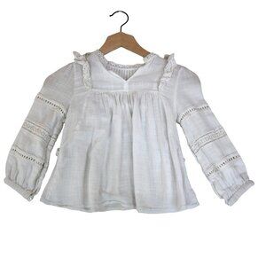 Zara Kids White Peasant Blouse Sz 7 (122 cm) Cotton Long Sleeve Boho Cottagecore
