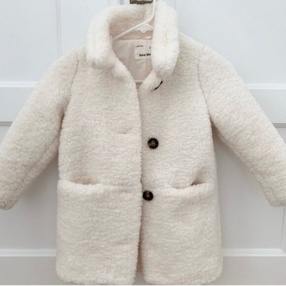 Keep your child cozy and stylish with this white teddy coat. Perfect for chilly days.