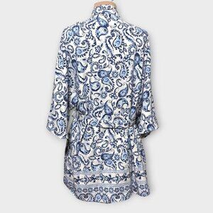 Zara Kimono Jacket, Belted - size M/L but fits oversized - Cream & Blue Paisley print - excellent, gently used condition.