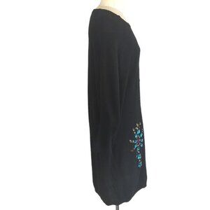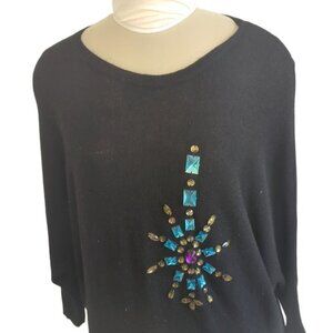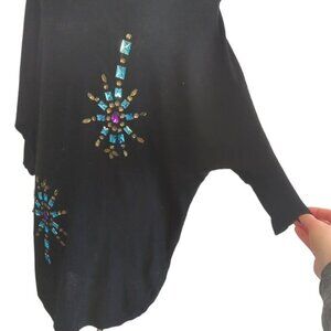 That's a black bejeweled dolman sleeve sweater dress by Zara Knit.