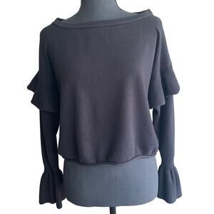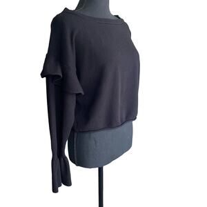Zara Knit Black Flounce Sweater Bell Cuff Ruffle Shoulder Black Women Size Small